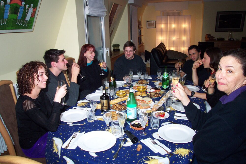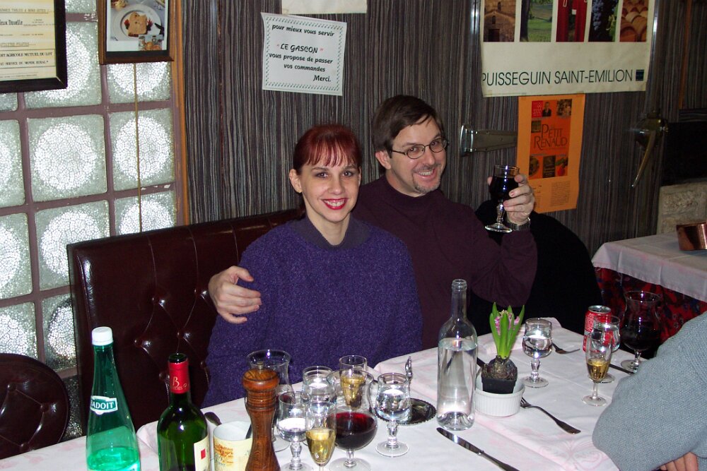Joshua Tex (Annie Wilson) and Mike Stanfill at Le Gascon in Pigalle Mom and Ross playing Jotto? December - Iris