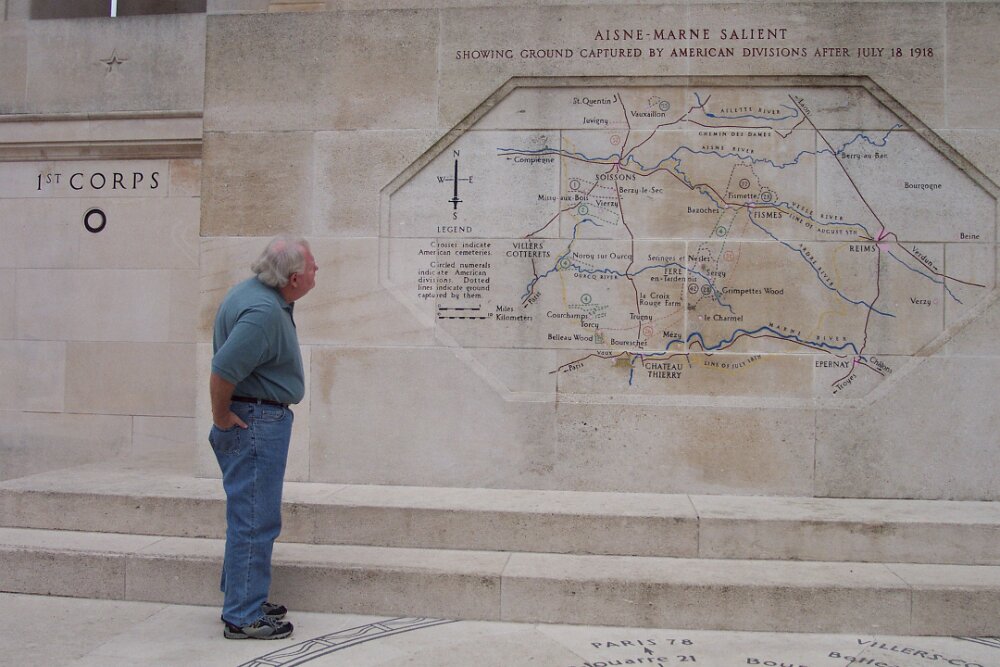 Richard,Bob and Ann Marie - dinner at 44 rue de la Tour Zooey, Patty Cakes, Phyllis, Ann and Richard at Chateau-Thierry American Monument June - ParisOctober - London