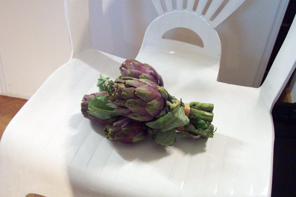 Christiane and Guy deSert with Bob outside Vaux-le-Viscomte Technician re-adjusting microphone --- a brief interruption Artichokes from the store Bob with Pattycakes in our office September - CarcassonneOctober - Bonn