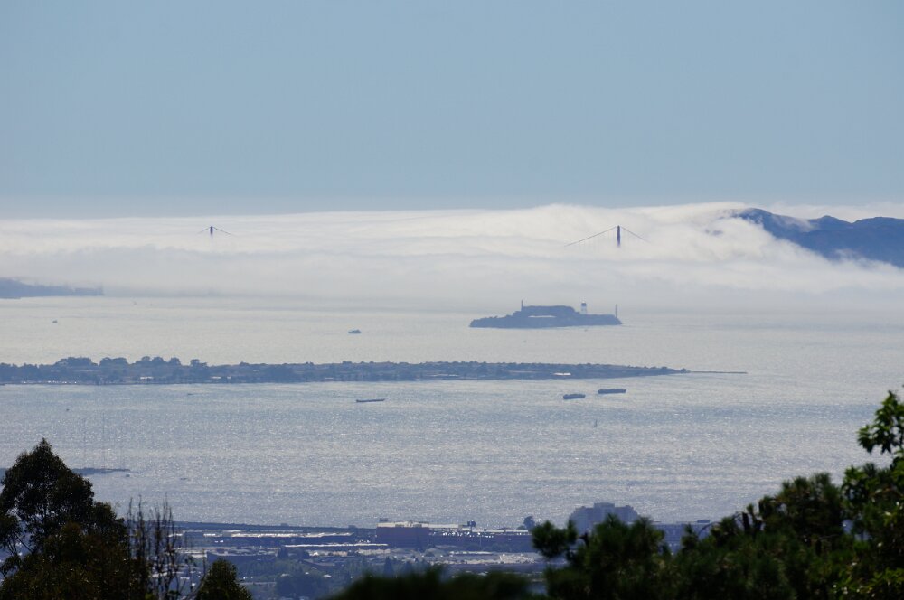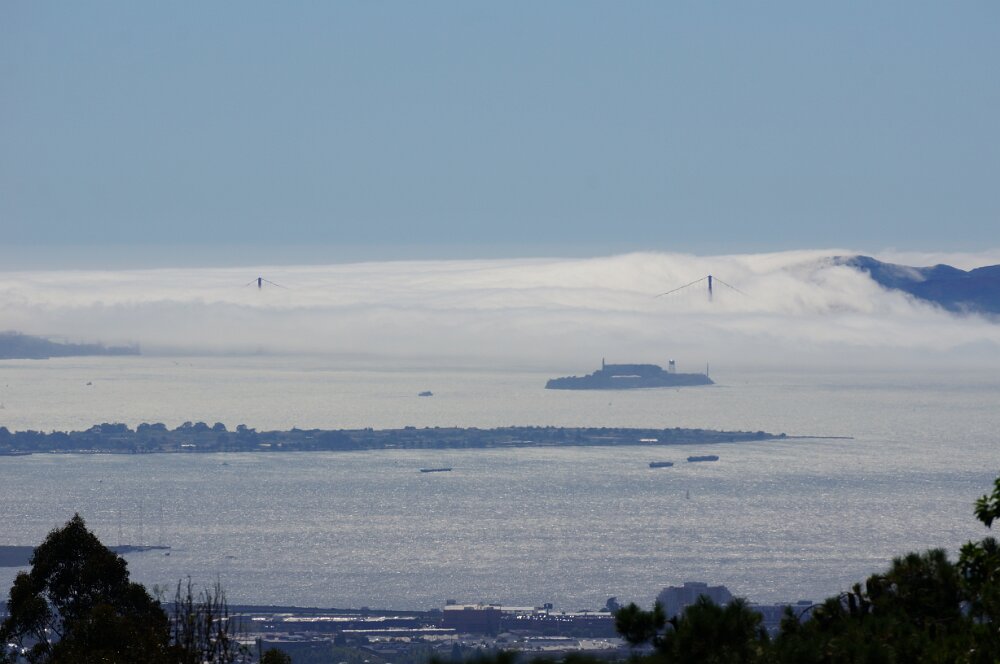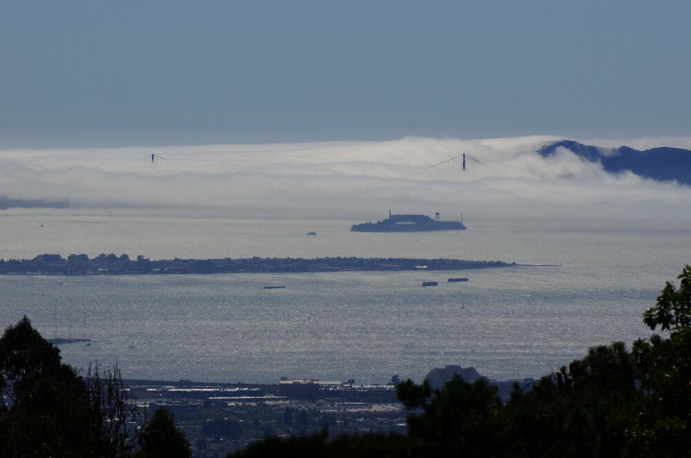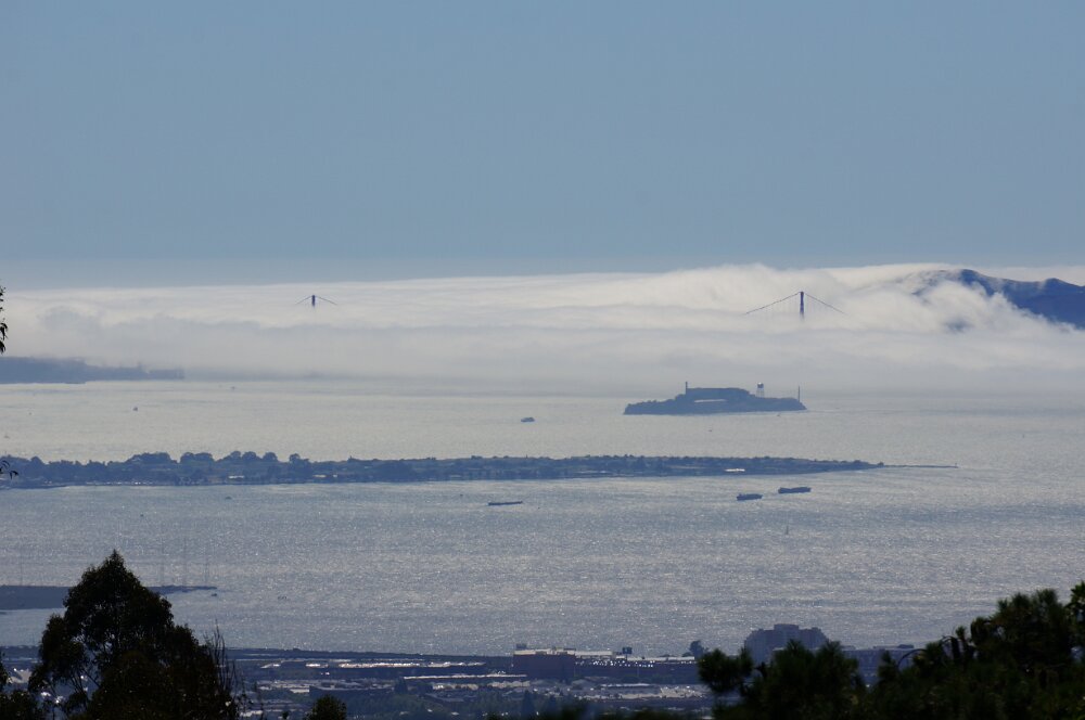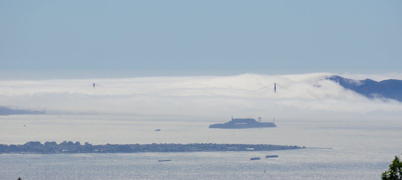 View of Golden Gate bridge in clouds from Manzanita house Maggie and Mollie at Sea Ranch beach Ann and Phyllis July - USS HornetAugust - Baseball Game