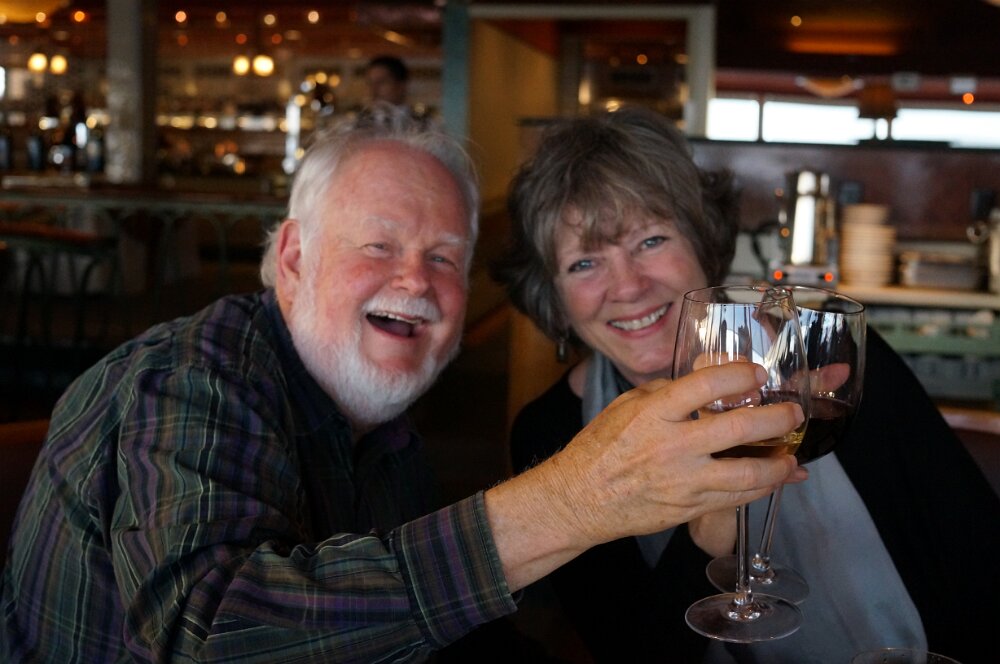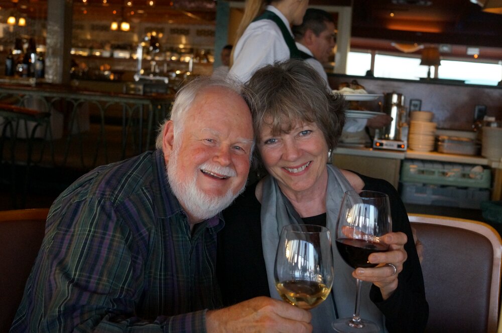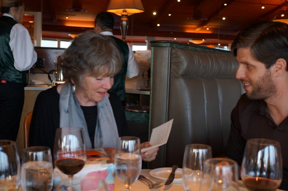 Reading the gluten-free menu at Scott's Seafood restaurant in Oakland for Ann Marie's 66th Birthday celebration Paul and Sylvia Sylvia and her mom, Julia March - Sea RanchApril - Dogs